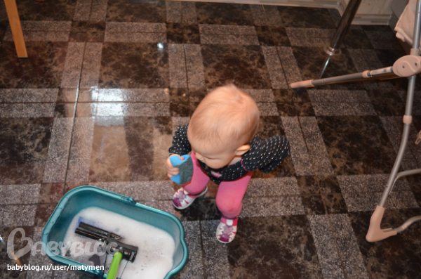 Потом мытье полов, опять с помощницей, очень старается, по локти в воде)))