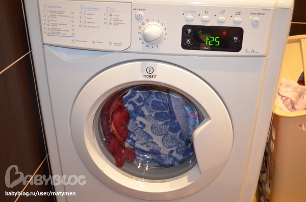 Запускаю стиралку с постельным бельем.