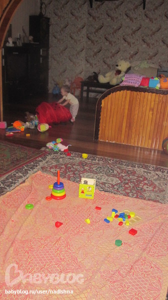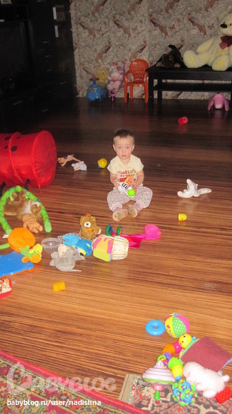 жалко наш папочка на работе, а то убирать игрушки это вечерняя рутина его и дочкина, у них вместе это прекрасно получается, у меня терпения не хватает, я быстрее сама уберу, чем дождусь когда доча это сделает