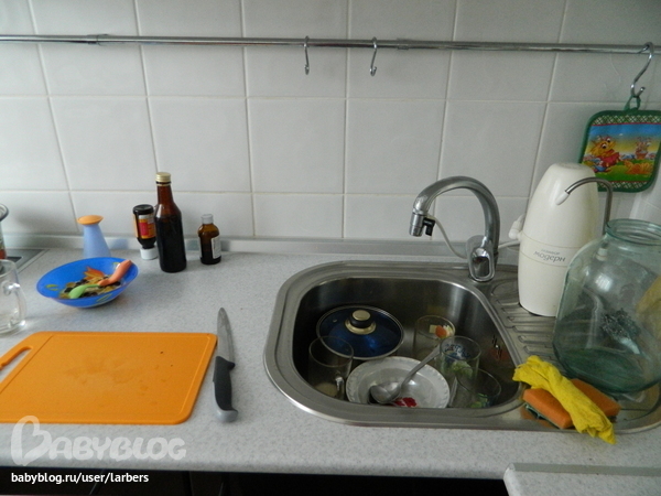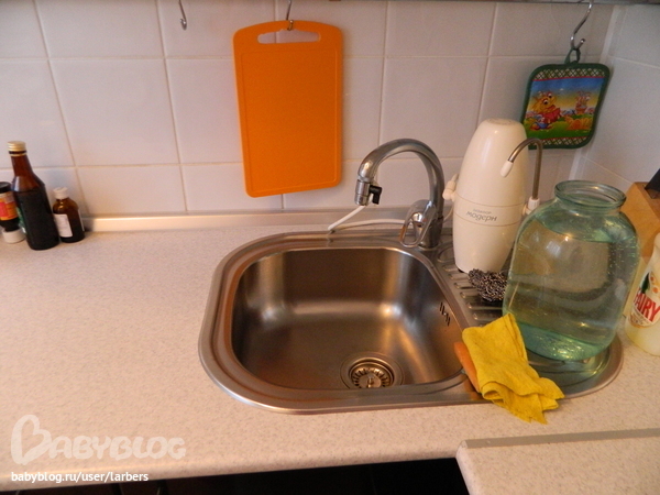 т.к. кухня у нас новая, драить раковину пришлось не долго, да и еще с прошлого полета остались кое-какие навыки. Ну, и собственно, моя волшебная раковина))))
