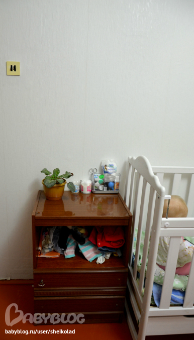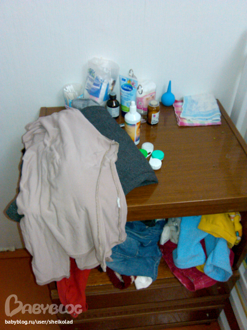 Таже история с детской одеждой. Все что надевается, переодевается в течение дня-двух складируется здесь. Не очень эстетично, но достаточно удобно.