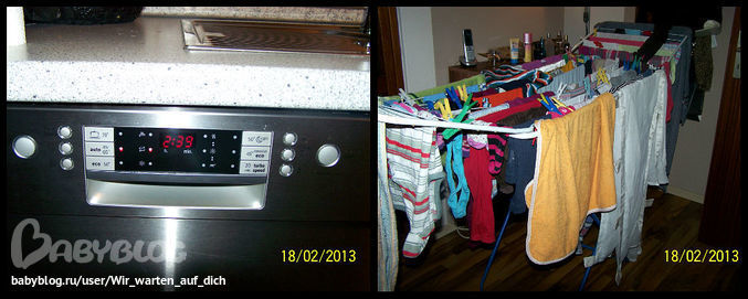 Ну вот уже и 8:00 можно запустить посудомоещ.машину.Снимаю белье с сушилки и иду заправлять постель.