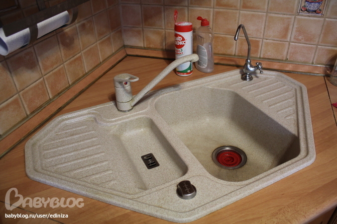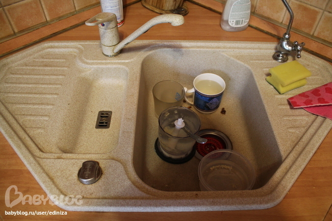Раковина (почти как и вся техника-мебель) достались мне в наследство от предыдущей хозяйки, состояние на четверочку с минусом - она из силгранита и дно уже порядочно потемнело и истерто, но сегодня старалась как могла, замачивала, терла-терла-терла, выкладываю результат того, что получилось) Кстати, если у девочек с подобными раковинами есть какие-то секретные действенные средства - поделитесь, плиззз))))