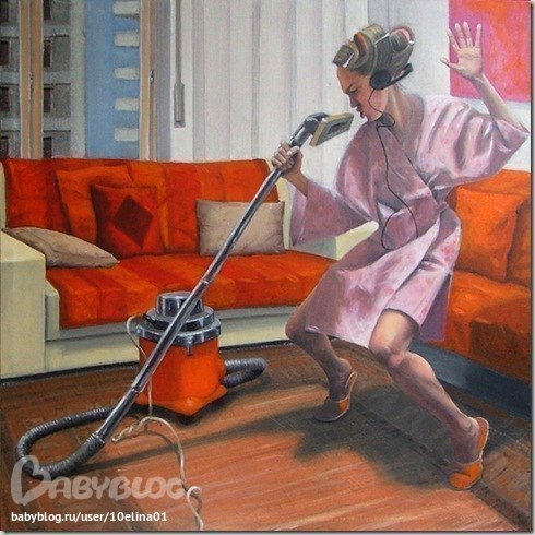 Стирка почти каждый, ну или через день. Это ВР – т.к. я закладываю белье и вытягиваю, а повесить на балконе это обязанность мужа ( как раз пришел с работы и в бой).