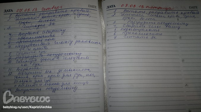 Я сначала писала все на листочках, и на холодильник. Сделанное вычеркивала, а вечером выкидывала листочек. Но потом перестала так делать(. Надеюсь с КЖ начну снова все записывать!
