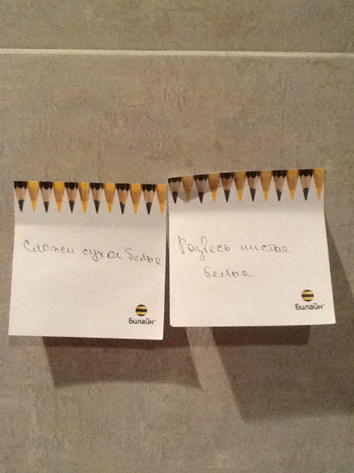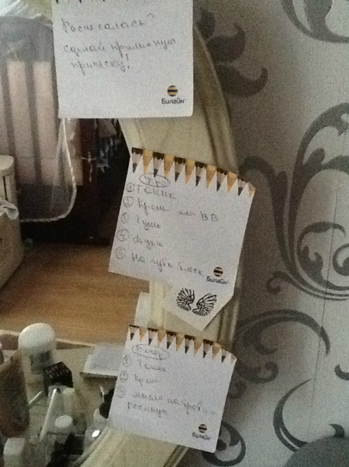 Налепила вот такие напоминалочки, и скажу вам, толк есть однако.... вроде бы в голове держишь, все помнишь, а тут раз, мимо проходя увидишь и решаешь,а сделаю ка я это прямо сейчас! в общем я ими довольна... мнение домочадцев меня не волнует. Свекровь слава богу бывает редко, а мужу все равно