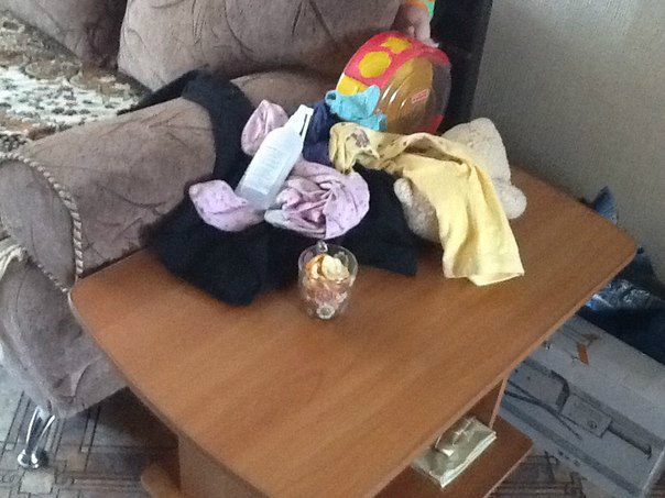 где скапливается хлам: Столик около дивана ( там очень часто чашки с чаем, игрушки, одежда ребенка) и стул в спальне ( там висит одежда, которую я ношу и домашняя одежда там висит) Фото есть вставлю вечером, т.к.с планшета не получается. Есть еще полочка в коридоре, но на днях мы ее выкинем и там не будут собираться не нужные вещи)