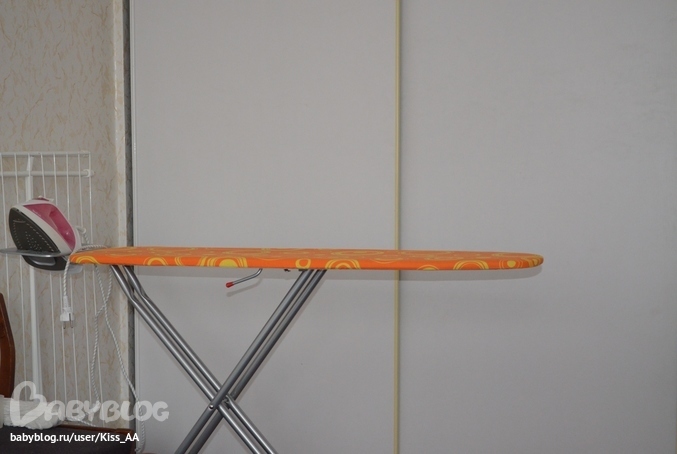 Муж также любит складировать вещи на гладильной доске, но я сразу же убираю...и вот не могу вам предоставить захламленную доску ;)