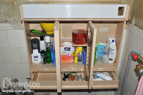 Сегодня я решила заменить 5-ти и 15-ти минутную работу в спальне на мое давнее незаконченное дело - когда меняли трубы в ванной, сняли все полочки, теперь их надо помыть и повесить на место + расхламить косметику-парфюмерию из шкафчика и убрать наконец-то из ванны табуретку, на которой сейчас стоит самое необходимое... Но это вечером.