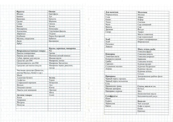 Список продуктов составила. В электронном виде доковский файл. Этот вариант еще претерпит изменения, но пока он устраивает меня и в таком виде. Список распечатан и вклеен в КЖ.