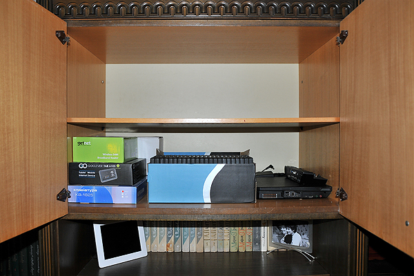 Теперь эта полочка - образец и немой укор для мужа - его техника на полочке ниже хранится в таком же бардаке