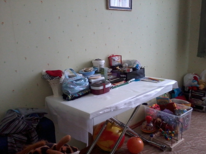 А вот мой хотспотик (живем без шкафов, т.ч сложить сюда вещи - это необходимость!)):