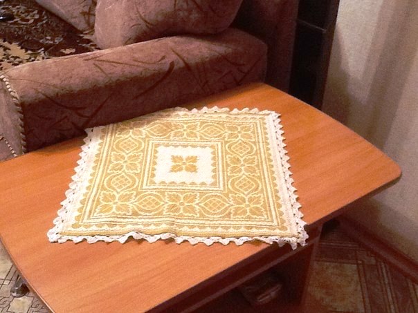 на столик постелила эту миленькую скатерть),нет смысла ставить вазочку или еще что-то , дочка все быстро выкинет на пол)