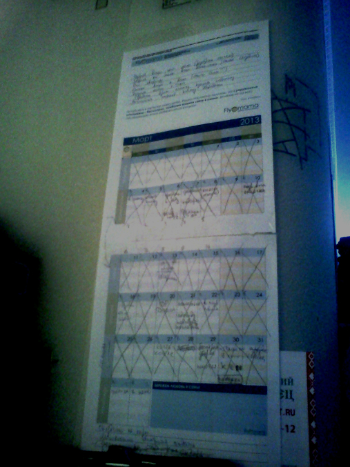 Очень удобная штука! Я начала такой делать еще до декрета на работе, не семейный, но полезный лично мне))) вешала у компа и отмечала крупные события, дела (мелких было много, туда не вмещались, писала отдельно на квадратных листиках и прикрепляла\открепляла по еренеобходимости). Узнав о системе флай-леди год назад, я и дома стала вести календарь, сначала рисовала от руки и вешала на стену. Потом подписалась на рассылку календаря "Фпаймама" на их сайте, и в конце каждого месяца мне на почту его присылают.