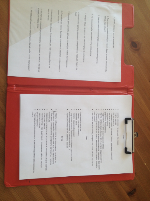 Хотите посмеяться? Перепечатывала сегодня рутины(с добавлением пункта о ершике) и мой комп заменил мне "15 минут расхламления" на "15 минут расслабления")))))))))) Я думаю, это знак))))))))))))))))))))) Кстати, вот мой активный КЖ(часть, которая постоянно под рукой, в которую постонно подглядываю) ТАм календарь, заповеди, рутины, план недели, списки зон и работы в них, ритуал красоты - в ванной спрятан)