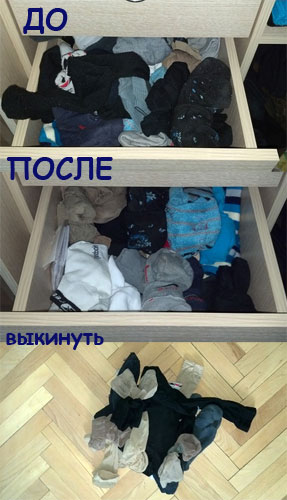 Ну, труселей с дырками у меня, слава Богу, нет ))))) а вот носков, как оказалось, было предостаточно)))) теперь хоть в ящике место освободилось))) Хочу еще сделать что-то типа органайзера для носков - с ячейками.