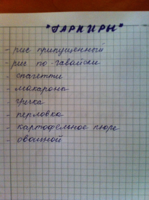 - домашний разносол - салаты, овощи и пр.