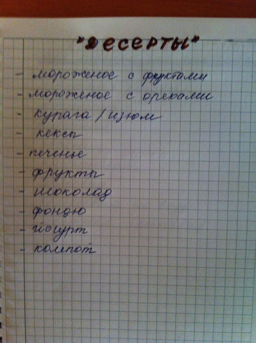 В десерты включила Йогурт и Компот, вообще, мысль возникла сделать отдельно лист - "НАПИТКИ", куда включу их, и возможно - кефир, топленое молоко, питьевой йогурт и т.п. -