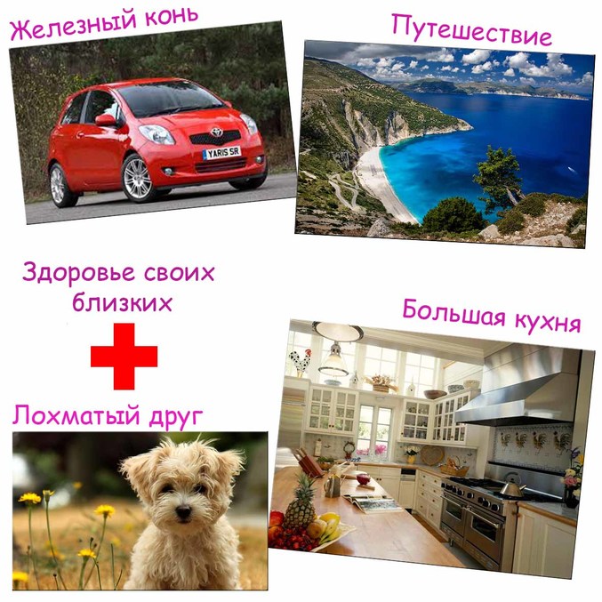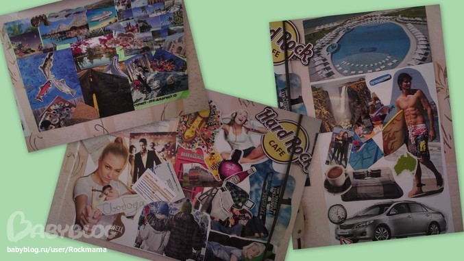 Можно сделать коллаж. Берете ненужные журнальчики, и вырезаете оттуда картинки, фразы или слова, которые вам греют душу.