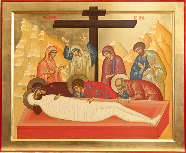 Поэтому именно в это время в храмах совершается вынос плащаницы - шитого изображения снятого с Креста распятого Тела Спасителя. Плащаницу выносят из алтаря и возлагают на специально приготовленный стол в центре храма - гробницу, а затем священнослужители и все молящиеся поклоняются перед ней. Плащаница находится на середине храма в продолжение трех неполных дней, напоминая нам о трехдневном нахождении Иисуса Христа во гробе.
