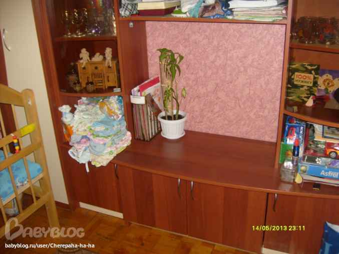 7. "Оранжевая полка". Это над компьютерным столом. А комп у нас на кухне))