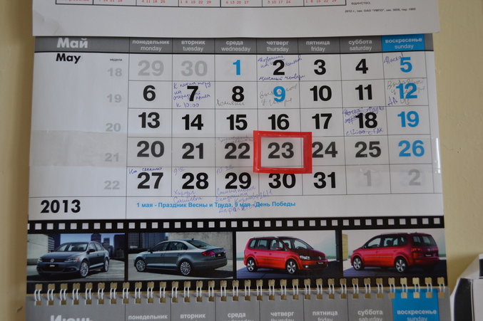 На этом календаре мы не занимаемся "украшательствами", это рабочий документ - месяц прошел, лист вырвали, делаем пометки дальше. В основном делаю пометки я, но читает его вся семья и поэтому проблем с семейным планированием дел нет.