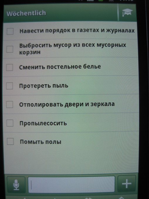 Отчитываемся по заданиямЯ решила делать ЕЧУ по вторникам. В пятницу не уверена, что всегда будет время. Все-таки впереди выходные и могут быть планы. Выходные отпадают. Понедельник - день тяжелый. Решила,что будет вторник. Мои задачи на ЕЧУ занесла в смартфон, туда же, где и мои рутинки. Мне так удобнее.