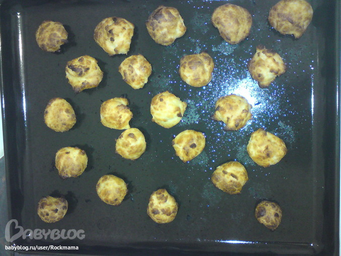 Эклеры нужно сразу достать из духовки, иначе они будут пересушенные и будут крошится.
