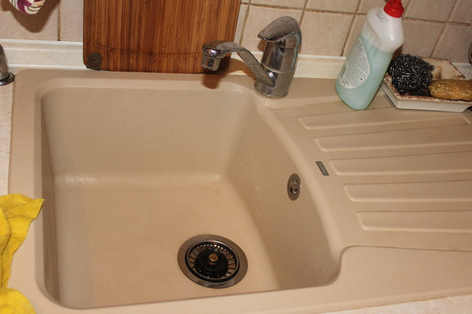 День первый - раковина! я за ней слежу всегда! Единственное, там постоянно остатки еды застревают и я все время выковыриваю. Ненавижу это дело, но и остатки еды там видеть не желаю. А так - чищу регулярно. Вот до и после.