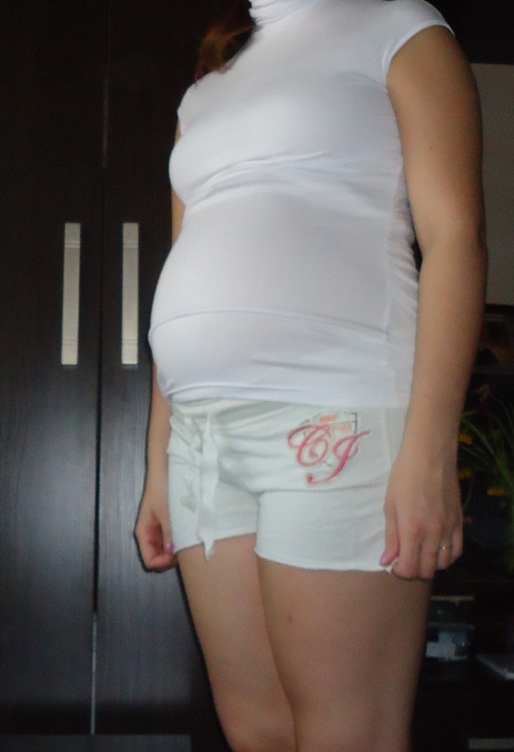 Честно признаюсь с растущим животом дома хожу в трусах и футболке,во первых дома ЖАРА!!!!(Муж ходит в одних трусах),во вторых-все шорты маленькие стали и штаны тоже.Новое покупать пока еще не довелось,с деньгами напряг и с временем тоже тяжело .Даже в спортивки не влезаю(