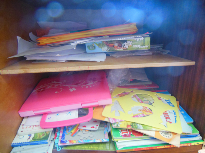 с дочкой навели порядок на ее полочке:)