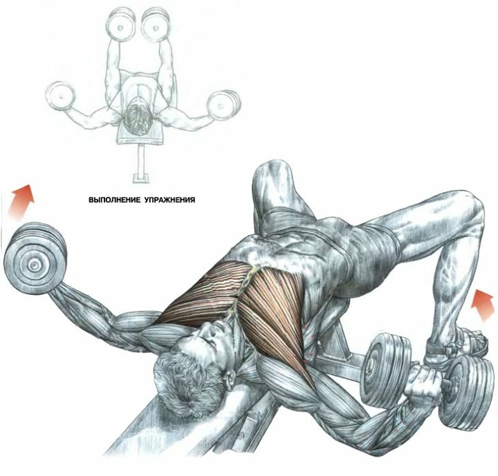 4. Жим гантелей горизонтально