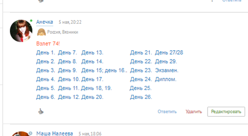- далее, в этот комментарий (нажав редактировать справа внизу от него) вы будете вставлять ссылку с отчетом по заданию на каждый день.