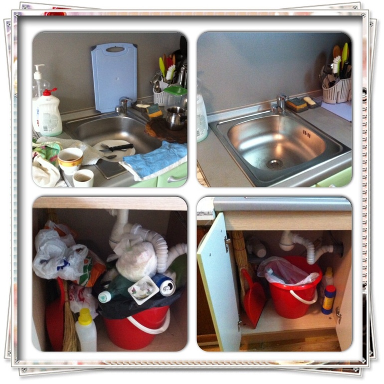 Но так как в субботу ко мне нагрянут гости, и в частности - свекровь, то мне все задания ооочень полезны)) итак, раковина сияет, средства на месте, под раковинойм- идеальная чистота, я намытая и в креме) . Единственный вопрос, который у меня остался - как это каждое задание уложить в 15 мин? Ну предположим, на себя могу выделить 15мин, на раковину тоже больше не нужно, но зоны покрупней, где давно не ступала рука человека, отнимают больше времени(( вот сегодня ушло минут 20-25 на зону под раковиной...