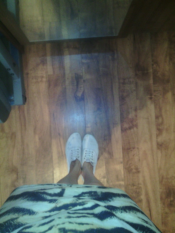 На ноги у меня кеды, с шнурками ))), которые ношу дома