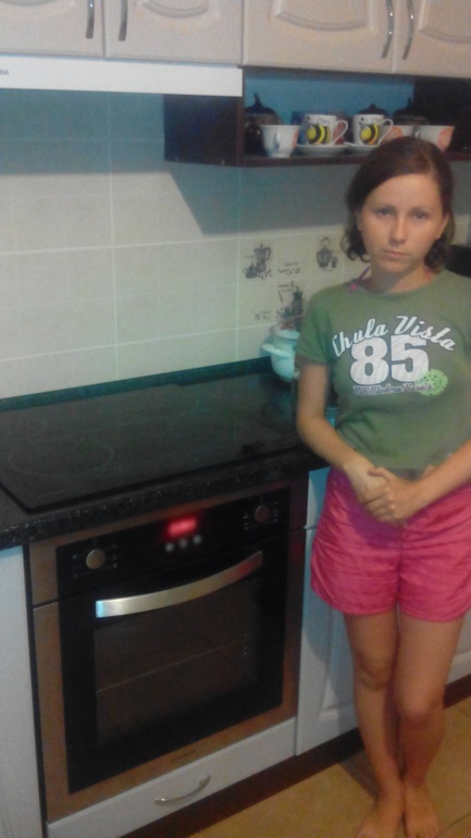 Дома я хожу в шортах, майках футболках, Летом жара, хожу босиком, когда прохладней - махровые домашние сапожки. Вот я рядом с плитой))