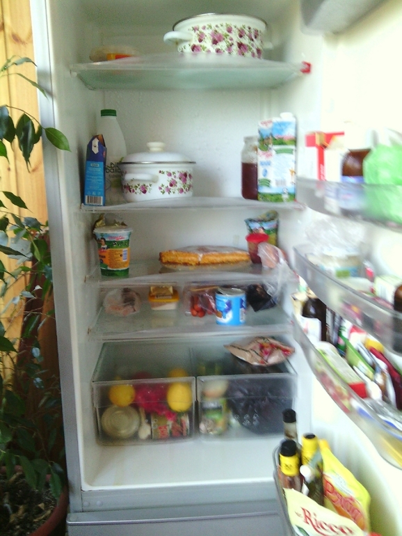 Себя нарядила, и пошла в холодильник. Фото до к сожалению забыла, но вытащила из холодильника 2 пустые тарелочки, которые любит убирать в холодильник муж.