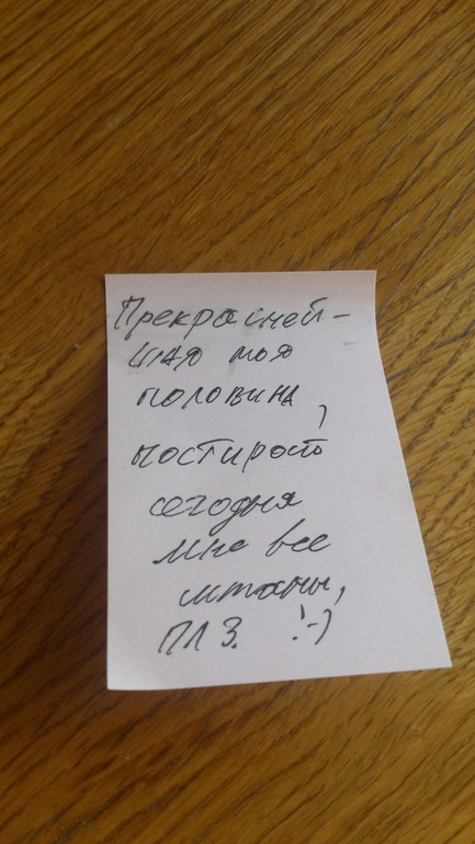 3. Об этом сейчас заботится мой муж :) Вот, например, я нашла утренний стикер на кухне.