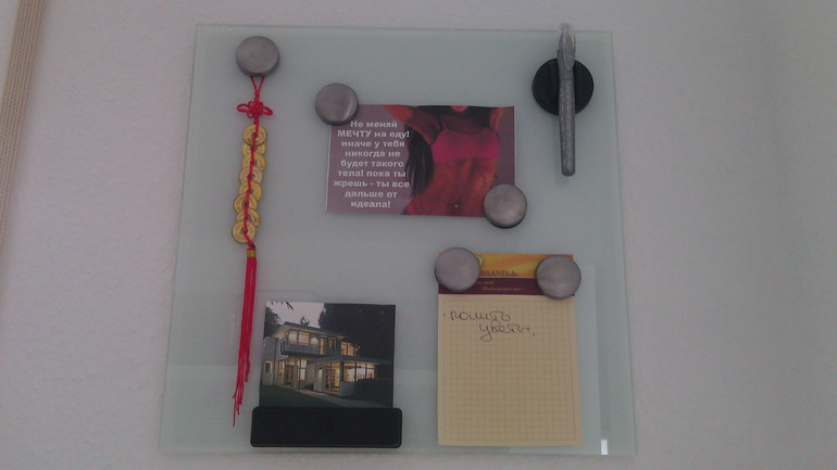 Так же могу показать мою магнитную доску...Она у меня для важных дел, которые надо не забыть, особенно счета или что то по работе. А еще я ее называю доска желаний.
