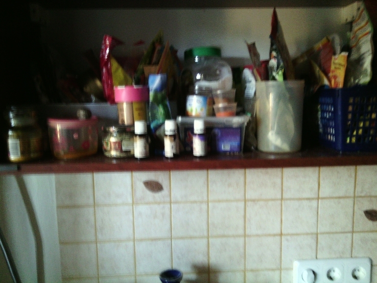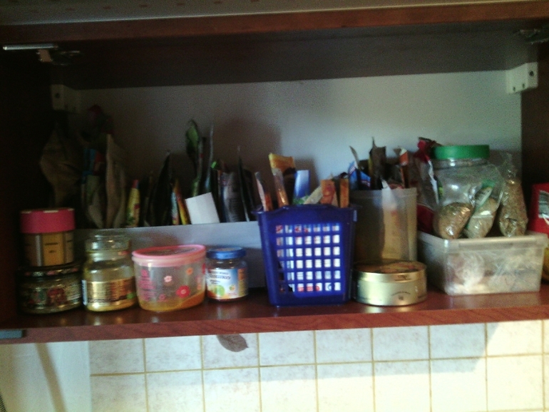 Самой захламленной оказалась полка со специями и приправами, с нее я и начала