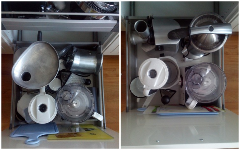 5) Кухонный шкафчик на сегодня - техника и поварешки. В который раз убеждаюсь, что секрет чистой двухкомнатной квартиры в том, что она трехкомнатная. Один блендер несу на авито подешевке продавать. Уборка прошла замечательно - составила список приоритетов по разбору в кухонных шкафах. Начала оттирать фасады с перфекционизмом, но быстро остановила себя и просто быстро помыла ручки и пыльные зоны.