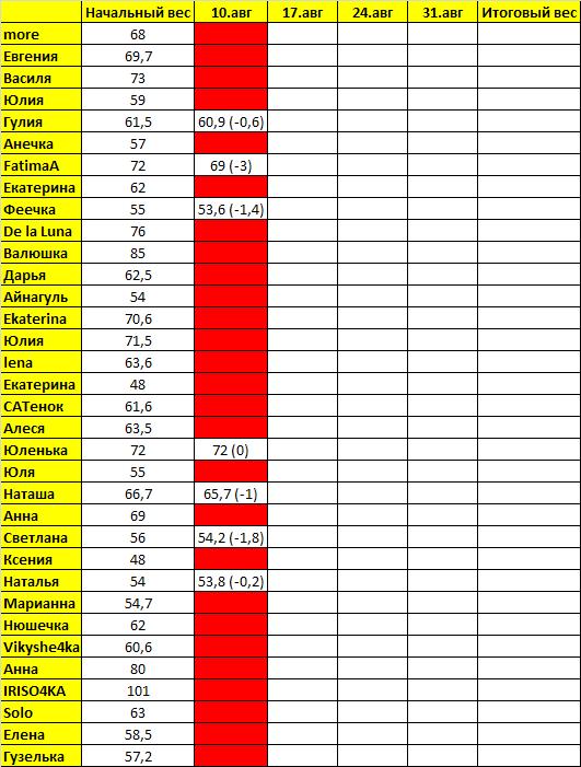 Марафон КрасотыВсем доброе утро! Как прошли выходные? Судя по тому, что мне прислали свой весь всего несколько девочек, видимо хорошо. Дамы, у кого не будет в таблице 3 данных подряд, те выбывают из марафона!