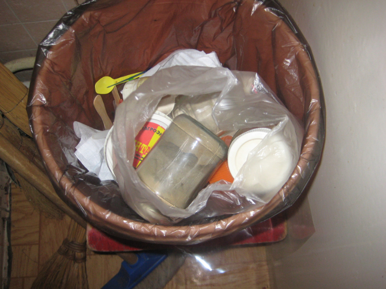 Пакетик набрался на помойку: