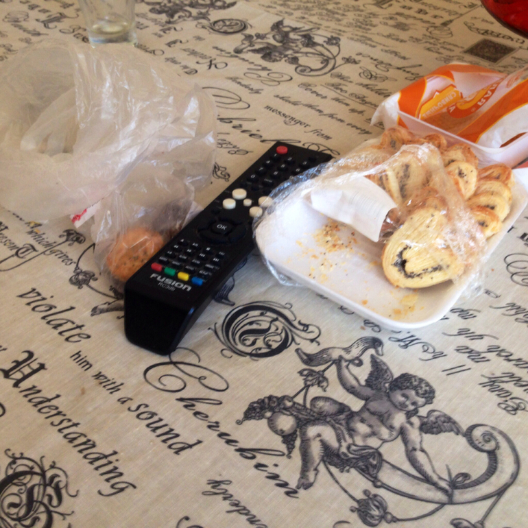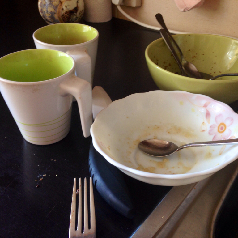 Нанесла)Пока крем впитывается и увлажняет мою обезвоженную и высушенную солнцем кожу иду на кухню...Мммм,вот и опять система дала сбой)Муж ночью ел,пил чай,с утра завтракал,поэтому я вижу вот что...