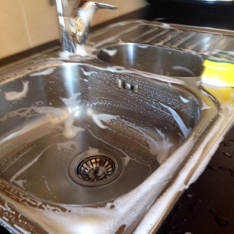 Да-да!!!Так я встречаю каждое утро,как будто и не оставляла вечером все в чистоте и порядке.Мою посуду,этой же губкой пробегаюсь по раковине,убираю халат на место,а сладости в шкаф...