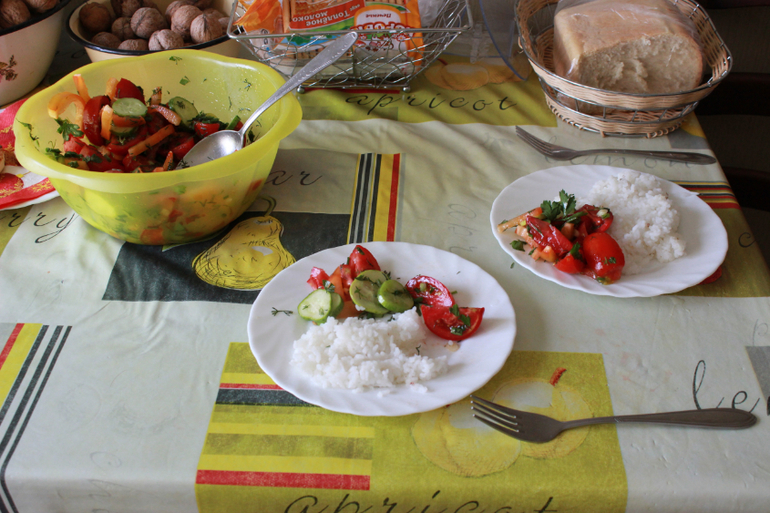 12:50 уходим в кроватку читать, в 13:15 сынок засыпает. Старший сын все еще продолжает гулять. Приходит в 14ч. Я отдыхаю, разговарию по телефону, в 14:30 иду готовит обед.