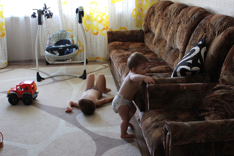 К 12 часа мы заходим домой, у дочки начинается первый дневной сон