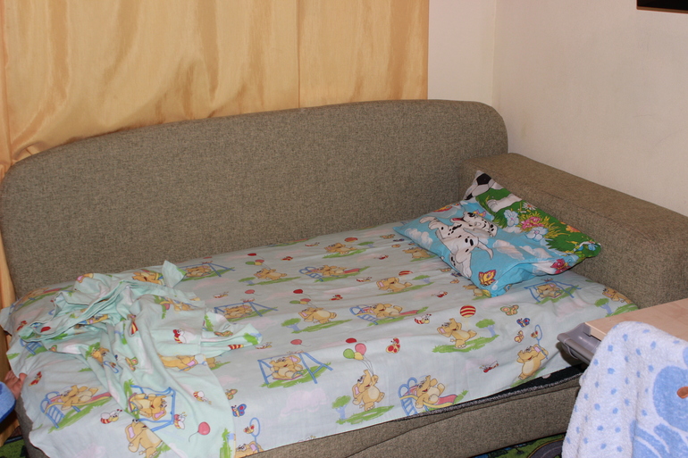 Время 10:00. Я вспоминаю про постели. Оставляю детей в зале смотреть мультики