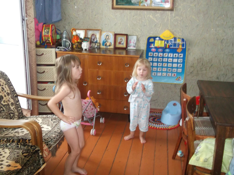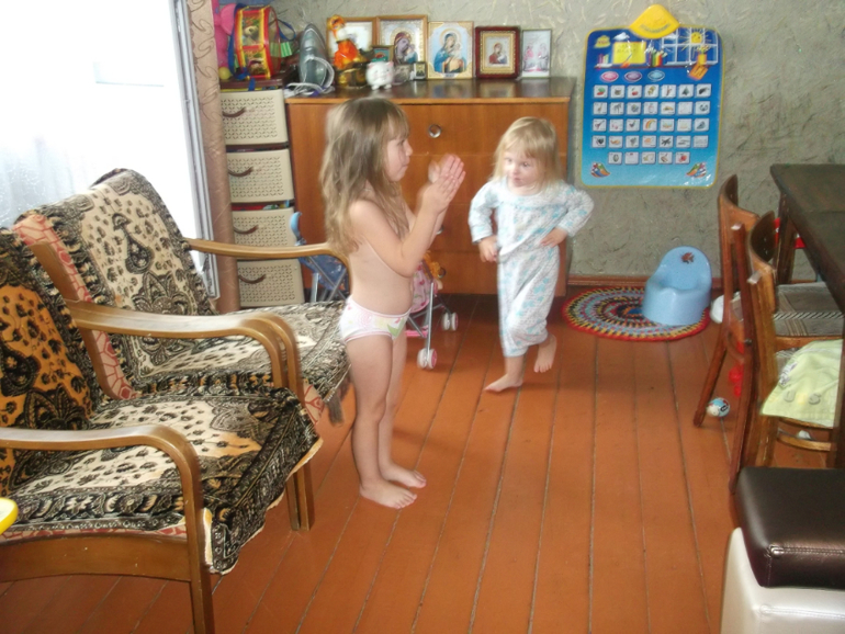 Пока я делами занимаюсь, Дочи переодеваются, потом я их заплетаю