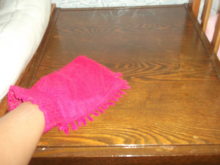 потом наводим порядок в зале, перед сном всегда убираем все по местам.
